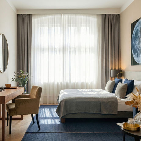 Jedes ein Unikat und doch vertraut. Alles in unseren Zimmern ist für einen ausgezeichneten Schlaf und angenehme Momente am Tag ausgelegt. Luxus bedeutet für uns der Wert höchster handwerklicher Qualitätsarbeit, die Verwendung edler Materialien, eine private und gemütliche Wiener Wohnatmosphäre und eine Reihe ausgewählter Bücher.